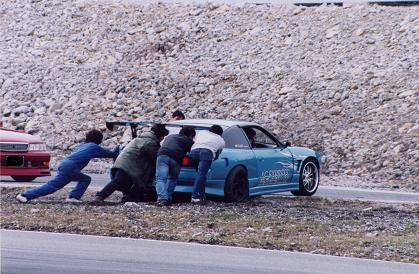 今回は前日まで降ってた雨で朝のうちはウェット路面。結構ウェットは得意だったはずなのになぜか最初2速の逆振りすら上手くいかない・・・。