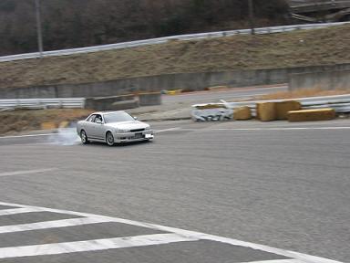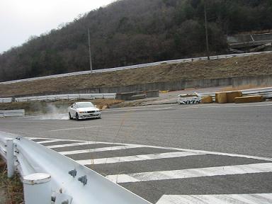 | まずはてくの君1コーナー。直線4発ばかりやってました。雨が降ってからのスタンド前は本当に切れてました。 | |