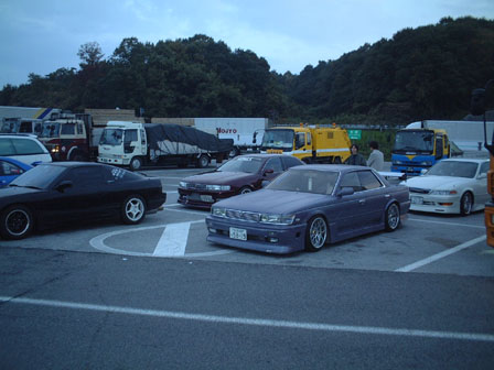| この日は心配していた雨も降らず、1日いい天気でした。 朝6時に中国道の赤松PAに集合予定!が・・・ みんな遅刻、一番のりは増田ちゃん! 大地君が中国道でパンク!怖〜 出発はなんだかんだ で7時でした。 |