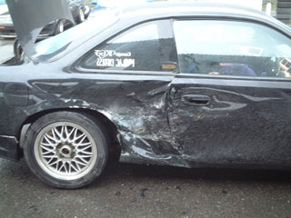 1コーナーでスピンして止まっていたシルビアにセフィーロがつっこんできた!