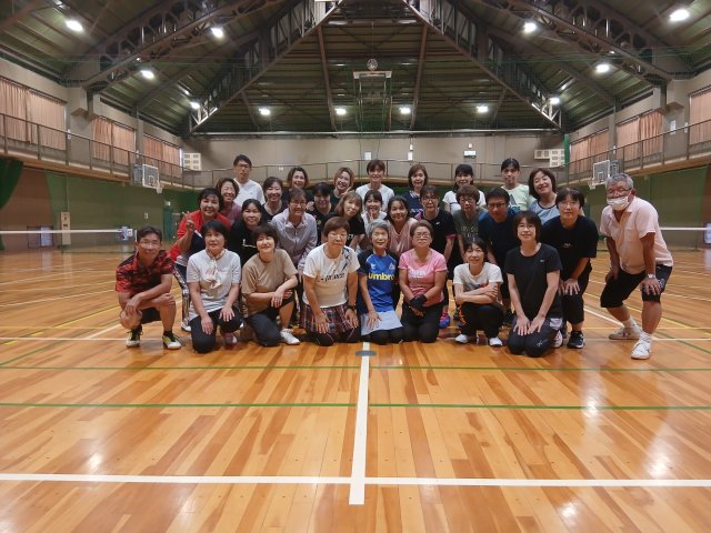 ・日時:令和7年8月16日(土)9:00〜17:00 ・場所:中央体育館 160名参加(男性80名、女性80名) ミックスダブルス予選リーグ戦&決勝トーナメント 富山県高岡市・魚津市埼玉県・愛知県小牧市・豊明市・福井県鯖江市・滋賀県・大阪府豊能町・島本町・大分県・兵庫県芦屋市・西宮市・伊丹市から160名が出場 今大会は全国からの応募過多により近隣協会に出場減の要請があり 当伊丹からは3チーム減の6チーム(フリ―に2人)が臨みました。 今回は伊丹協会の中堅&若手のメンバーで出場しました