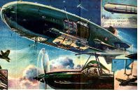 国防科学雑誌というサブタイトルが面白い。この場合の科学には空想科学とか疑似科学といった、メインの意味からするとちょっと外した感じがするね(当時は大マジだったはずですが)。それはそうとこの雑誌結構有名で人気もあるみたいなんですね(もちろん一部のマニアにですが)。それは昭和の絵師、小松崎茂氏が健筆を揮っているからです。で実際に実物を入手するまで、アニメ設定集みたいに楽しい絵本かなと持っていたのですが、大日本帝国はそんなに甘くなかった。当時のこの手の雑誌の例に漏れず啓蒙的な色が強いのです(とりあえず私が入手した号は)。当時の高等教育の進学率や自動車の普及率を鑑みるに、戦争遂行には少しでも科学技術的な知識とそれを使いうる技術を、国民とりわけ兵士になりうる若年層に浸透させる必要性があることは、今の私から見てもなるほどなと思うのですが、もしかして政府あるいは軍部から国策的な指導があったのでしょうか?(財団法人機械化国防協会というのはネットで調べるに、陸軍の外郭団体として出来た組織らしい)。それとも時代の雰囲気と言ったものでしょうか?この辺り調べてみると面白いかも。はたしてどのくらい実績をあげたのか?さて内容は多岐にわたっています。表紙の架橋戦車、巻頭カラーページはお約束の小松崎茂画伯でして、この「空中航空母艦」(図1)がかっこいいぞ。ジェット推進(瓦斯タービン噴射式機関)で成層圏を飛ぶ飛行船で、飛行機を空中発進/収容できるとのこと(ガンダム?ラピュタ?)。ヘリウムをしのぐ無爆発性ガスを使っているって、何やねんと突っ込んでおきましょうか。未来の新案兵器(これも小松崎茂だ)、戦車演習移動見学(国民学校生徒による)、空想戦記小説(「姿なき新兵器」蘭郁次郎)等々といった読者受けを狙ったいわば糖衣の部分は主に前半にまとめて、中盤からは一気にギアが入って(?)やや難しい話に突入。相対性理論まで触れている自然科学入門なんてのもある。さらに、リクルート用記事として、主に軍人さんが執筆した国防と訓練の特集というのもある。当時の軍人さんの書く原稿というのは、どうにも精神主義礼賛がきつくて、それも“勇猛果敢で不撓不屈の戦車兵魂”だとか“火の出るような訓練”なんて手あかのついたレトリックで書かれるものだから却って内容の稀薄さが際立つ。今の私には一言“めんどくさい!”当時はどう思われていたのだろうか? 機甲部隊のためには学生にも運転と整備の教習をすべきという記事(学徒の機甲訓練)の中に、教習車の手配に苦慮しているという正直な記述があります。えー雑誌名は機械化でしたよね。いくら超兵器を夢想していても実情はこんなところだったんだね。あと模型の作り方とか戦車兵採用試験の解説とか本当に盛りだくさんで、100ページ超(112ページより後ろが脱落していました。とほほ)の雑誌でした。今日では本誌の本来の目的であったはずの、強い兵隊の養成に資するということは何の意味もなくなってしまったが、そのための糖衣的な部分のみが生き残って物好きの間でフィーチャーされているんですね。