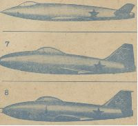 ソ連についても紹介されているのですが、プロペラ機についてはそこそこ情報があっても、ジェットについてはよくわからない状態だったようで、魑魅魍魎がうようよしていますねえ(図1)。ドイツ機(Me262)を大いに参考にした(パクった)ような機体が紹介されています(図2:ラヴオチキンLAG-8)。実際そのような機体はあったけれど(スホーイSu-9等)当時のソ連でも好意的には見られなかったようであらかた没になったようです。ただ当時の西側の情報筋ではナチスの血を引いた超兵器がソ連で作られているように思われていたようです。調べてみるとドイツから分捕ったDFS-346をテストしていたとのこと。穿ちすぎた見方かも知れないけれど、ソ連の技術では無理でドイツの技術をパクって初めて音速に挑める機体が作れる・・・と思われていたのかもしれない。Mig-15ショック以前の話です。
