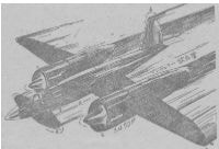最近「空」の別の号(1941年12月号)を入手したので追記を少々。奇しくも開戦直前号ですね。特集は模型飛行機の理論と製作ということで、模型飛行機の製作記事なんかが載っているのですが、境界層や強度計算の方法まで解説してあって、これは既に高校レベルを通り越して大学レベルですね。すごいぞ「空」。あと名物コーナーとして夢の飛行機を投稿するというのがあって、これがなかなか面白い。これ(図2)なんか超音速機ですよ。当時は音速を超える飛行機なんて不可能というのが一般常識だったようですが、そこで怯むような日本男児ではないのだ。曰く“(超音速飛行が不可能ということについて)否!断じて「否」と謂いたい。否そう成さしむのだ”とある。でも衝撃波が超音速飛行の妨げとなるとの投稿者自身の解説もあって、へー結構知られていたんだなってちょっと感心。少なくとも全く音速付近の空気力学について全く知られていなかった訳ではないんですね。ま、今の目で見ればとても超音速飛行はできそうにないデザインなのは仕方ないですが。この投稿もそうだけど、熱いんですね(痛いとも言う)。今風にいえば意識高い系? たかが素人の投稿者じゃねえのってのは言わない当時の空気だったのである(多分)。