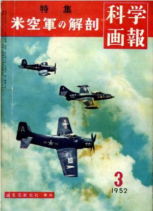 朝鮮戦争(1950〜1953休戦)の余波を受けて急遽特集された本のようです。はしがきに米軍から資料の提供を受けて云々との記述があります。で、朝鮮戦争でのコルセアやスカイレーダーの写真が巻頭を飾っているのですが、もろに戦争の写真を取り上げるのはいささかためらいがあったようで、はしがきが言い訳めいている。“われわれは心より平和をのぞむものであるが、(中略)実態をつかむこともまた必要である”なんてね。科学画報ということだから航空機専門の雑誌ではないと思うのですが、出版元の誠文堂は戦前にも「航空の驚異」を出版していますね。本号は頭から尻尾まで飛行機(米軍機)の話だけでまとめられてます。いったん敗戦で途切れた(多分)航空専門誌の穴を埋めていたのかもしれないね。1952年当時の米軍機の話題ですから、Fナンバーは93までで、超音速機のセンチュリーシリーズは陰も形もありません(F-100の初飛行は1953年)。記事中では超音速飛行について触れられているんですがね。戦争が終わって7年経ってジェットという言葉については広まったようで普通に使われていますが、ミサイルは誘導弾という日本語が当てられています。そういえばB-61マタドール(当時)を無人爆撃機と解説しているというのはいささか勇み足というかミスリーディングを招くように思える(本当はミサイルです)。無人爆撃機ってUAVかよ!ミサイルという概念が一般に広まっていなかったということでしょうか。Bを冠しているのでその通りに解釈すれば爆撃機だし無人で飛んでいくのだけれど、いったん離陸(発射)したら着陸することのないものなのですよ!なんかよくわかっていない人が書いている感じで隔靴掻痒です。またB-36の解説で“巨大な操縦盤(この操縦盤はかつての重爆B-24リベレーター機の主翼面積に匹敵する!)はその架縁に施されたボタンを押すだけで、他に特別な動力を用いずに操作されるようになっている”というのは明らかな誤訳ですね(原文に当たっていないけれど)。操縦舵面面積がB-24の主翼面積に匹敵するということと後縁にサーボタブがあって人力操舵を可能にしていたということでしょう。おまけに筆者が注をいれて“近代大型機の操縦は(中略)尨大な操縦盤の間を駈けまわってコントロールするらしい”と書いているのも傷を深くしているね(モグラたたきゲームを想起します)。この辺が専門誌でない限界かとも思える。ま、私がこんな偉そうなことを書けるのも、航空専門誌を読み漁ってきたからなのですが。やっぱり出てきた原子力飛行機の構想。GEとコンベアが開発に乗り出したそうです。アメリカでは今よりもっと無邪気に原子力に夢を持っていたのだな。結局B-36に原子炉を載せて飛行させただけで終わりましたが(ほっ)。WW2が終わって7年の1952年、大戦機であるコルセアの末裔が空母にいた頃に、B-52の試作機が飛ぶ(1952年初飛行)という話題が載せられている。そのB-52の末裔が21世紀になってもまだまだ現役というのは、歴史はつながっているんだなという感じがしますね。