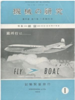 特集は飛行機ということで古本市で購入しました。表紙はコメット。よく見るとBOACの広告なんですね。表紙にいきなり広告かよ!というわけでこの雑誌どういう立ち位置なんでしょうか?一般向けのものにしては色気がないというか、平気で数式が載っているし、レイアウトが学会誌みたい。かといって純然たる学会誌というには分かりやすく興味を引くような話題に終始している記事もあるしでよくわかりません。業界誌ってやつでしょうか? 出版の養賢堂って専門書を出しているところなのでそういう編集になったのかもしれない。ジェット関連の記事(数式いっぱい)や超音速飛行についての記事(数式いっぱい)があったりして私に理解できるのは日本が再び航空技術の最前線に返り咲きたいという執念だ。レシプロエンジンの時代は終わったこれからはジェットだ、超音速だって、イケイケドンドンで世界に追いつけって感じだったと思える。ところで1954年ということでX-1によって超音速飛行は既に成し遂げられていたはずなのですが、記事の中では微妙に外して書いてある感じで触れられていません。言外には高空でのなにがしかの実験機で既に超音速飛行は出来ている・・・というのは読み取れるんだけど、書いてあるのは正式の速度記録となる低空での3km往復での超音速飛行はF-100に期待だって言う書きぶり。X-1は空中発進の短距離スプリントなので例外とされていたのか、X-1の音速突破がしばらく秘匿されていた(らしい)影響なのでしょうか?(一応1953年2月号の「航空情報」にX-1についての翻訳記事があるのだけど、超音速飛行は達成したとの記述があるのだけれど技術的な記述はぼかされているし具体的な速度については公表できないとなっている)
