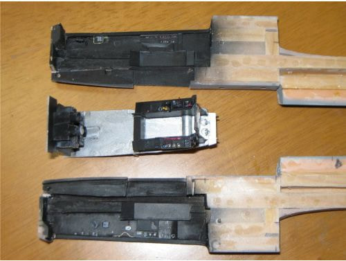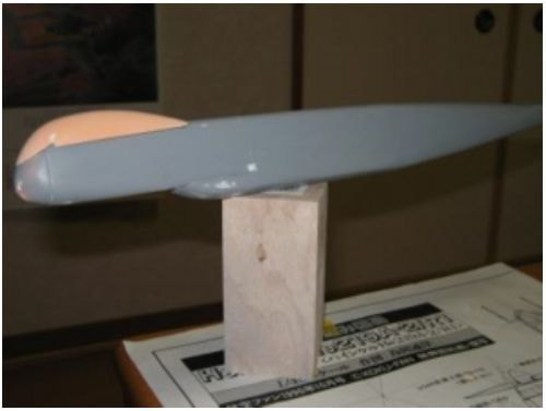 ナセルは後端が無駄に(?)ピンと尖ったところがかっこいい。こういうところはすぐぶつけて壊れてしまうので最後迄削らずに取っておいてなおかつ、あらかじめ真鍮線を仕込んでおきます。翼の取り付けのほぞと脚収容部はどのみちくりぬいてしまうのですがコンター(外形)の流れを見る為に別材で作って仮止めしておいて削りだします。まあまあ出来たかなというところで仮止め部分を取り外し脚ドアのヒートプレス原型とします。とまあうまく行ったように書いていますが、途中で図面のナセル推力線が?(垂れ下がっている)であることが判明したり、ぱきっと破滅の音がしてしまったり、削りすぎてポリパテの世話になったりと順調に悪戦苦闘しております。