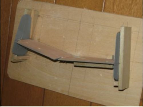 図面は前述の航空ファンにおまけでついていたものを1/40に拡大して使用。図面自体はなかなかいい感じだったんだけど作っていくにつれていろいろありますね(考証的に?とか3次元的に成立していない?とか)。ま、世間に流布している飛行機の図面なんてどれもそんなものですからね。何で1/40なのかって? まあスケールくらいしかアイデンティティーを発揮できないというか、同じスケールで良くできたキットがあると違いが明白になってしまうという悲しい現実があります。閑話休題。いつもそうなのですが、胴体は半割にして作ります。コックピットなんかを作りやすくする為です。でまあこの程度の造作なのですが。この機体に関してはとてもテールヘビーになることが予想されますので、薄板で箱を作って(肉抜き)それに人工木(サンモジュールTW)を貼付けて四角いすりこぎ(?)を作ります。これをゲージに合わせてさくさくと削ります。この行程は楽しい。どんどん形になっていくのでストレスがない。ただ先は長いのですが。ちなみにこういう模型を作るときの素材としては朴の木を使うことが多いようですが、科学の進歩を無視する手はない。人工木の方がずっと具合がいいです。狂わないし、木目を殺す(下地)必要は殆どないし、切り口がささくれることはないし、水がしみ込むこともない。でも問題は値段と入手性だね。