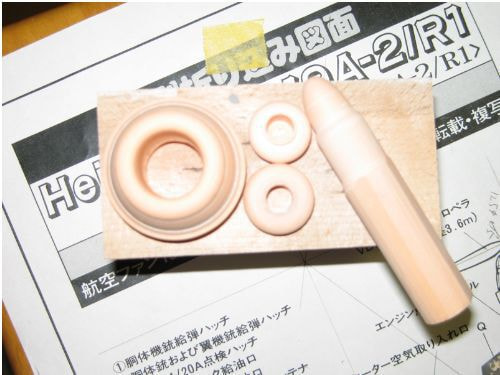 ここで少し小物を。スピナ、タイヤ、カウル、ホイール等の回転体は人工木の挽きもので作ります。でシリコンゴム型→レジン注型。オトナなので時間をかけずにお金をかけます。ホビー用の旋盤を買ったんですが、これで何でも作れるぞっと意気込んだんだけど、なかなか使いこなすのは大変。目指せ、東大阪の町工場の旋盤マイスター、なんちゃって。プロペラは何本か作っていいものをシリコンゴム型→ホワイトメタル化。レジンではプロペラのような薄いものは無理があるね。プロペラ機はどうしてプロペラ機なのかと言えばプロペラがあるからで、そのアイデンティティーたるプロペラにはこだわりたい。プロペラは思いのほか薄いしねじれている。その薄さ具合、ねじれ具合が難しい。最終的にはまあこんなものかと自分を合理化してしまうのですが。ちなみに良くできたプラモでもたいていプロペラが厚いしねじれが足りないような気がする。棒きれっぽいというか。素組でも後縁を少し研いでやると男前がアップするはずだ(多分)。あとラジエータ等もそれらしくでっち上げてと。次に続きます。