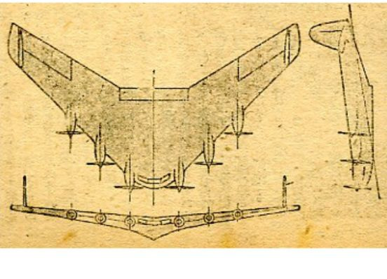 「航空朝日」昭和17年12月号より。1937年にロックスビー・コックス博士とL.P.ムーク氏によって考えられたものとのキャプションがあります。このアイデア(全翼でその中に貨物搭載する)というのは今でもみられますね。翼に重量が分散されるので構造重量が軽くなるというメリットがありますが、発展性は?だ(気軽にストレッチというわけにはいかないということです)。作るのもコストがかかりそうです。そこまで考慮すると最終的なメリットはどうなのかという感じ。