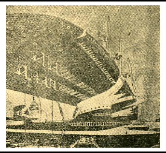 1930年代末に未来の航空機はこうなるって感じで描かれた超大型旅客機の構想図。今の大型機(昔から見ると超超大型機)とは根本的な考え方の違いが見受けられるね。エンジンがジェットorレシプロなんてことではなく、大型客船が空に上がったものが昔の人が夢想した超大型機ではないか。ゆったりとしたキャビン(舞踏場があるという!)に豪華な調度・・・そもそも飛行機に乗って旅行するなんてお大尽様でしかあり得ない時代だからね。今では一般庶民でもジャンボに乗って(エコノミー席に詰め込まれて)海外旅行できるようになったけれど、そんな効率的な“輸送”ではなく、翼内の座席からゆっくりと流れていく地上の景色を眺めながらの空の旅なんてのも贅沢だよな。「航空朝日」1941年10月号より