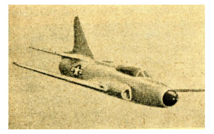 1950年代中頃、正式にF-104の写真が公表される前にメディアを彩ったマルヨンもどき(その2)。どー見てもF-94にしか見えないし、これで超音速飛行は無理と断言できるね。で、解説には“〜目下量産中である。外形はF-94Cスターファイアーと大差なく直線翼で〜”とある。なるほど、外形=F-94Cスターファイアーと取ったわけね。実際は直線翼=F-94Cスターファイアーだったわけで。(国語のテストか!)ま、量産中でも実機写真が公開されていなかった時代の話ですね。