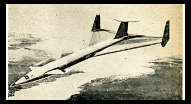 1950年代末〜60年代には超音速旅客機がブームだったというのは前にも書きましたが、これもその1つ。カナード付きのデルタ翼と思ったら垂直尾翼上にT型の水平尾翼もついている。ちょっと蛇足的。が、そんなことよりこの機体、何と熱核融合を利用しているという(核分裂じゃないよ)。凄い、凄すぎます。何年先の想像なのか(笑)。ま、当時は核融合くらいすぐ出来るわと思っていたのかも知れないね。「航空ファン」1961年10月号より。