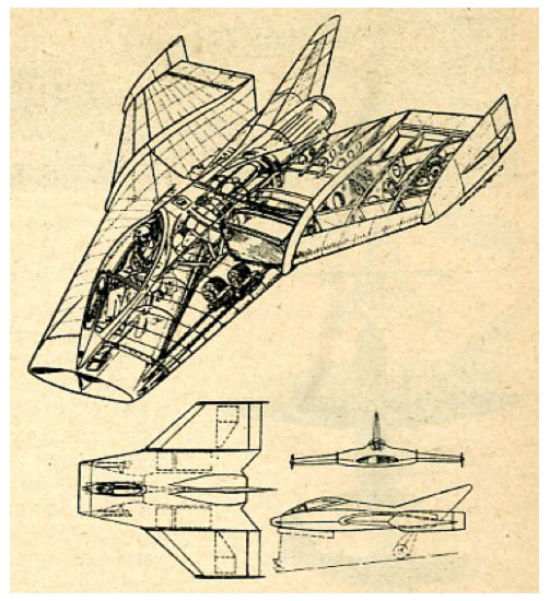 “これがスエーデン(原文ママ)の新型戦闘機?”というタイトルで「航空情報」1955年2月号にこの機体が採り上げられておった。スウェーデンの雑誌が伝えるところによるとJ-35と同時に開発中とのこと。私もこの業界長いので(笑)、怪しさ警戒装置がぴぴっと反応したわけですよ。全長9mの小型機に4tonのターボジェット2基ということで実現すれば凄い性能になるでしょうが、この小さなタンクではあっという間に燃料を使い切ってしまうわな。実用性0と言い切ってしまおう。レーダーを搭載する場所もないしどうするつもりなのと詰問したくなりますね。実現していないのは言うまでもない。まあ、雑誌社の人がねつ造したスクープということなんだろうね。元ネタはリピッシュP.12あたりか?