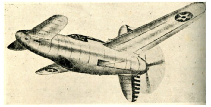 「航空知識」1942年9月号に載っていました。先尾翼というとかっこよさ3割増(個人的見解)なのですが、イマイチもっちゃりした機体ですねえ。XP-55とXP-56を混ぜて1/2した感じだ。まあ、いろいろ検討してみた案の一つなのでしょう。キャプションによると方向安定の悪さが致命的欠陥になるとずばっと看破されていますが、いや確かにそうですねえ・・・っていうか単なるコンセプト図に対して大人げないなあ。私もつっこむとしたら前脚はどうなってるのかなーってとこかな。