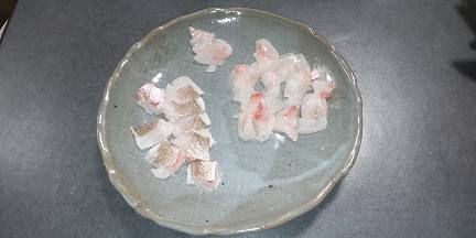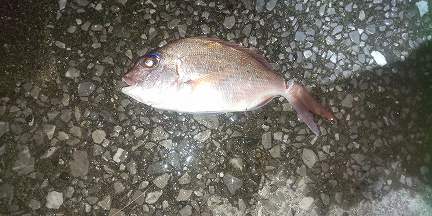「 いつもの場所に行きましたが人が居たので別の場所へ。 しかしどこも人だらけ。2時頃 4箇所周って場所確保。 すこし休憩し朝6時 サビキスタート。7時前 薄明るくなって爆釣。 ここはマアジが殆ど。 7時20分 泳がせ開始。 8時過ぎ アタリ! 合わせるも一瞬乗りましたが外れ。 よく見るとハリスが切られてました 恐らくサワラ。 風が強くアタリが無いのでジギングをやってみると、20投して疲れたころにアタリ! 余り引かず。 エソ50cm リリース。 11時まで粘りましたが場所移動。 いつもの場所が空いていたのでラッキー。 アジゴなどの小魚が多く良さそう。 休憩し13時 再開。 泳がせスタート。 波がべた凪。 アタリ無し。 夜のイカ釣りの為、一旦終了。 15時 カゴ釣り開始。 エサ取りが多くエサが持ちません。 釣れてもチャリコ、ベラ。 少しタナをあげてようやく30cm位のマダイを確保。 16時 泳がせするもイカがかじってしまい、今日は青物が居ないようです。 18時 イカ釣りに集中。 しかしアタリ無し。 20時頃からアタリ連発。 計6杯 400g 後は800〜1500g 胴長32cm。 イカは実家、知り合いにプレゼント。 小さいイカは刺身で。 マダイは刺身、焼き切りにしました。 」 との事。